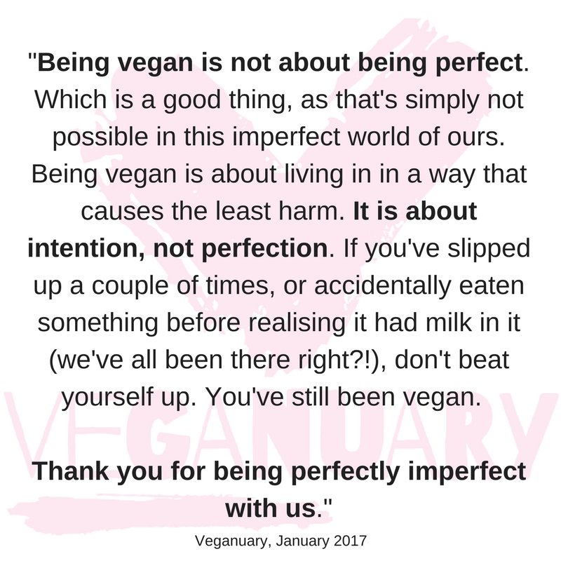 Going vegan is a learning process and it's fairly likely you're going to mess up and eat something that isn't vegan. Perhaps you didn't mean to or maybe you did, that's okay. The important part is not giving up because of a few mistakes or weak moments. If you mess up, forgive yourself and move on. It's not "all or nothing" and making a few mistakes doesn't mean you should stop trying altogether. You don't need to memorise all the facts or even have all your answers figured out. People are going to ask you questions and it's perfectly fine not to have a response figured out. No one is asking you to be perfect.